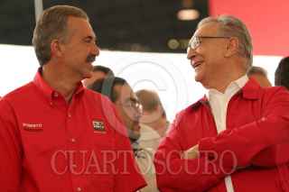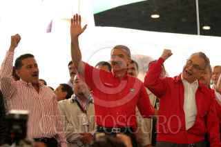 JALISCO, 24JUNIO2006.- Roberto madrazo, candidato de la Alianza por México a la presidencia de la república, y Ricardo Gamboa Pascoe, presidente dela Confederación de Trabajadores de México (CTM) durante el LIX consejo estatal de la Federación de Trabajadores del estado. FOTO: Juan Flores/CUARTOSCURO.COM