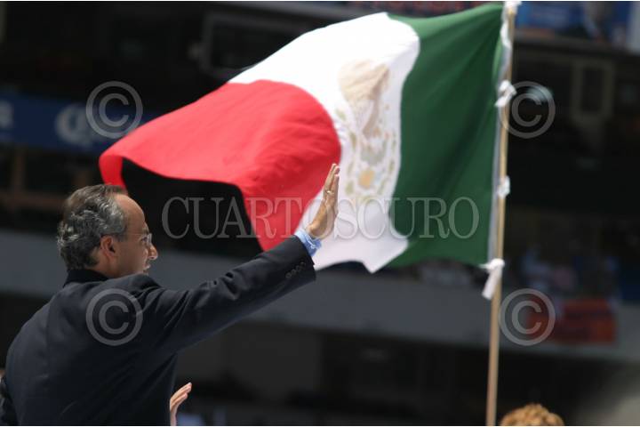 MÉXICO, D.F. 25JUNIO2006.- Felipe Calderón Hinojosa, candidato del Partido Acción Nacional (PAN) a la presidencia de la república, realizó su cierre de campaña en el Estadio Azteca. FOTO: Iván Stephens/CUARTOSCURO.COM