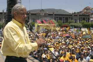 TOLUCA, ESTADO DE MEXICO26JUNIO2006.- Andrés Manuel López Obrador, candidato de la colación Por el Bien de Todos durante su cierre de campaña en dicha entidad. FOTO: Nelly Salas/CUARTOSCURO.COM