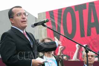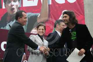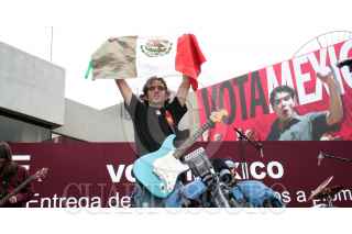 MÈXICO, D.F. 30JUNIO2006.- En el Instituto Federal Electoral, Luis Carlos Ugalde y consejeros ciudadanos dieron a conocer los resultados de la elecciones infantiles y entregaron reconocimientos a integrantes de la campaña "Tu rock es votar". Alejandra Latapì, Leonardo de Lozane vocalista del grupo Fobia. FOTO: Paola Hidalgo/CUARTOSCURO.COM