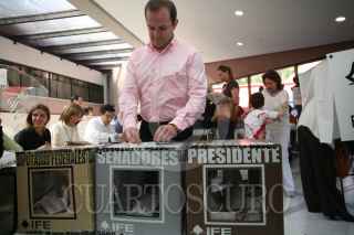 MÉXICO, D.F., 02JULIO2006.- Gustavo Jiménez Pons, candidato al gobierno del Distrito Federal por el partido Social Demócrata emitió su voto en Bosques de las Lomas. FOTO: Raúl Montufar/CUARTOSCURO.COM