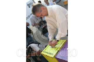 GUADALAJARA,JALISCO.-02JULIO2006.- El candidato a gobernador de Jalisco por la alianza PRD-PT, Juan Enrique Ibarra Pedroza, muestra sus boletas electorales. FOTO: Javier Hoyos/CUARTOSCURO.COM