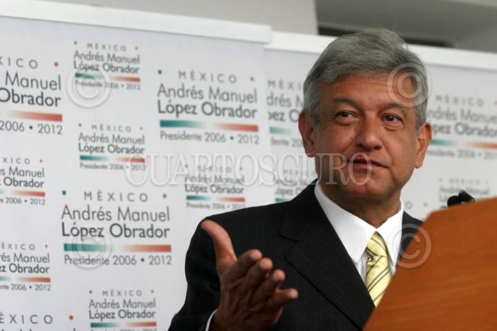 MEXICO; D.F., 05JULIO2006.- Andrés Manuel López Obrador, candidato a la presidencia de la República por la coalición Por el Bien de Todos y Claudia Sheimbaun, integrante del equipo de campaña del perredista, ofrecieron una conferencia de prensa en su casa de campaña para insistir en la supuestas fallas del conteo rápido de los votos en las elecciones presidenciales que se disputaron en domingo pasado. FOTO: Moisés Pablo/CUARTOSCURO.COM