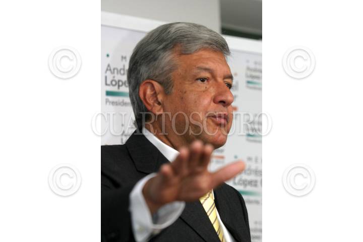 MEXICO; D.F., 05JULIO2006.- Andrés Manuel López Obrador, candidato a la presidencia de la República por la coalición Por el Bien de Todos y Claudia Sheimbaun, integrante del equipo de campaña del perredista, ofrecieron una conferencia de prensa en su casa de campaña para insistir en la supuestas fallas del conteo rápido de los votos en las elecciones presidenciales que se disputaron en domingo pasado. FOTO: Moisés Pablo/CUARTOSCURO.COM