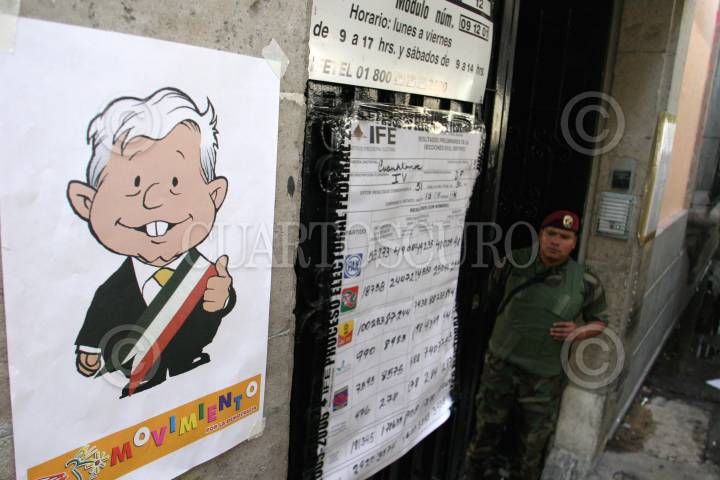 MEXICO, D.F., 05JULIO2006.- Simpatizantes del candidato perredista a la presidencia, manifestaron su apoyo en las instalaciones de la Junta Distrital del IFE 12, cuando el día de hoy se empezó el conteo paquete por paquete para definir quien será el futuro presidente del país. Martí Batres dirigente estatal del PRD presentó supuestas pruebas que demuestran que hubo un manejo inadecuado del conteo rápido del IFE y en el que aventajana el candidato panista. FOTO: Moisés Pablo/CUARTOSCURO.COM