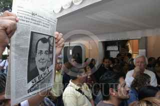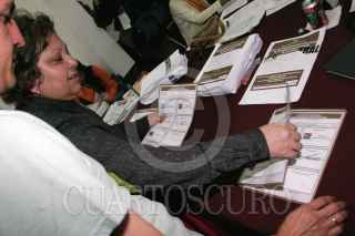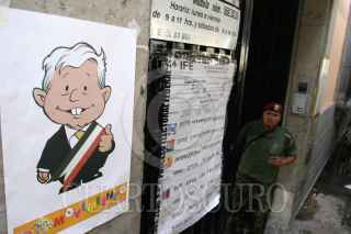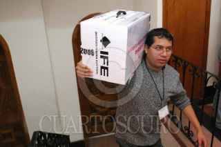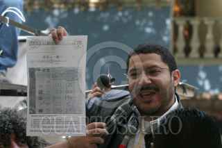 MEXICO, D.F., 05JULIO2006.- Simpatizantes del candidato perredista a la presidencia, manifestaron su apoyo en las instalaciones de la Junta Distrital del IFE 12, cuando el día de hoy se empezó el conteo paquete por paquete para definir quien será el futuro presidente del país. Martí Batres dirigente estatal del PRD presentó supuestas pruebas que demuestran que hubo un manejo inadecuado del conteo rápido del IFE y en el que aventajana el candidato panista. FOTO: Moisés Pablo/CUARTOSCURO.COM