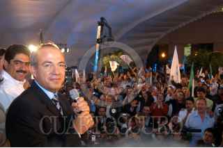 MÉXICO D.F.06JULIO2006.- Felipe Calderón candidato del PAN a la presidencia de la república, asistió al CEN del PAN donde se reunió con simpatizantes después de que se dieron a conocer los resultados del conteo de votos. FOTO: Guillermo Perea/ CUARTOSCURO.COM