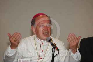 MEXICO, D.F., 07JULIO2006.- Giuseppe Bertello, nuncio apostolico del vaticano en México, durante la rueda de prensa que ofrecieron a los medios previo a la celebración eucaristica para dar posesión, a el tercer obispo de la diosesis de Veracruz Monseñor Luis Felipe Gallardo Martín del Campo. FOTO: Isaac Aguilar/CUARTOSCURO.COM