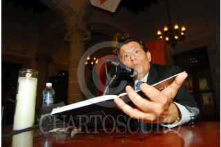 DURANGO, DURANGO 16JULIO2006.- Victor Hugo Rascón Banda presentó el libro "Un Aire de Familia", del escritor duranguese Enrique Mijares. FOTO: Octavio Zaldivar/CUARTOSCURO.COM