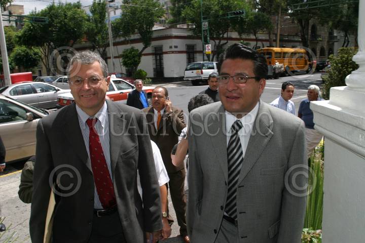 MEXICO, D.F. 17JULIO2006.- Gerardo Fernández Noroña y Leonel Cota Montaño, presidente nacional del PRD a su llegada a la casa de campaña de la Coalición Por el Bien de Todos, donde integrantes de la coordinación de defensa del candidato de la coalición Por el Bien de Todos sostuvieron una reunión. FOTO: Nelly Salas/CUARTOSCURO.COM