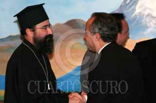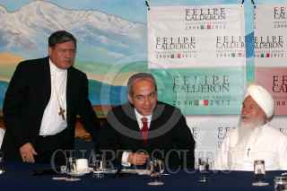 MEXICO, D.F., 17JULIO2006.- Norberto Rivera, Cardenal Primado de México, Felipe Calderòn Hinojosa, candidato a la presidencia de la Repùblica por el PAN y el ministro Arjan Singhs, durante una reuniòn del panista con el Consejo Interrelitgioso, en un hotel de la zona de Polanco. FOTO: Moisés Pablo/CUARTOSCURO.COM