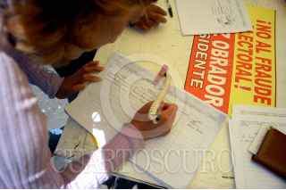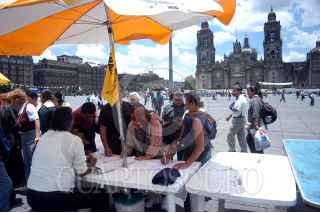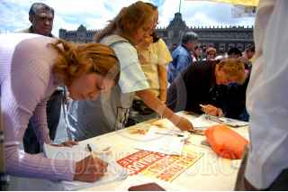MÉXICO D.F. 17JULIO2006.- Simpatizante del candidato a la presidencia de la coalición Por el Bien de Todos, recaban firmas para la relización del conteo de voto por voto en el Zócalo de la ciudad. FOTO: Guillermo Perea/CUARTOSCURO.COM