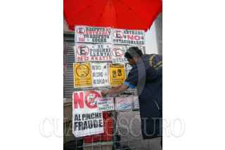 MÉXICO D.F. 17JULIO2006.- Después del mitin informativo del candidato de la colación Por el Bien de Todos, se mantiene propaganda en el Zócalo de la ciudad. FOTO; Guillermo Perea/CUARTOSCURO.COM
