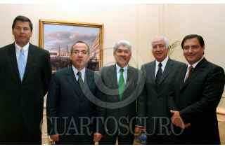 MEXICO, D.F., 18JULIO2006.- Se reune Felipe Calderón Hinojosa, con gobernadores panistas, Patricio Laviada, Yucatán, Francisco Ramírez Acuña, Guadalajara, Marcelo de los Santos, San Luis Potósi y Luis Armando Reynoso, Aguascaliente. FOTO: Alfredo Guerrero/CUARTOSCURO.COM