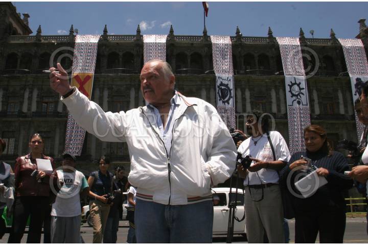 MEXICO, D.F., 19JULIO2006.- Isaac Mazri, Carmen Bazán, Jose Luis Cuevas y Gilberto Aceves, artistas plásticos, acudieron a presentar una denuncia en la agencia 50, por la destrucción de sus carteles que estaban en exhibición en avenida Juárez. FOTO: Moisés Pablo/CUARTOSCURO.COM