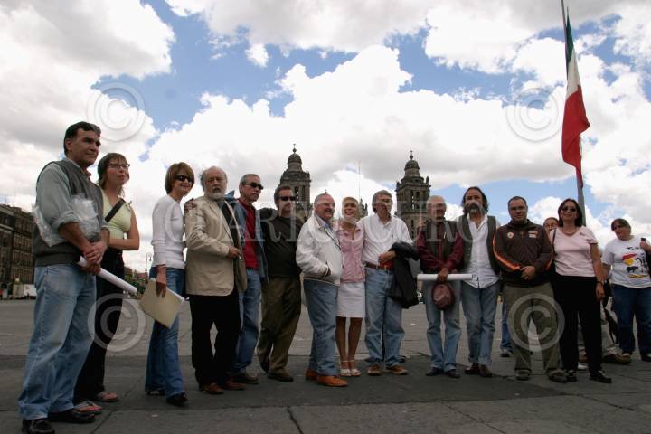 MEXICO, D.F., 19JULIO2006.- Isaac Mazri, Carmen Bazán, Jose Luis Cuevas y Gilberto Aceves, artistas plásticos, acudieron a presentar una denuncia en la agencia 50, por la destrucción de sus carteles que estaban en exhibición en avenida Juárez. FOTO: Moisés Pablo/CUARTOSCURO.COM