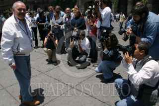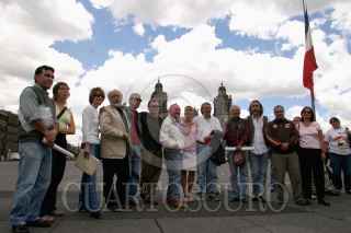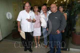MEXICO, D.F., 19JULIO2006.- Isaac Mazri, Carmen Bazán, Jose Luis Cuevas y Gilberto Aceves, artistas plásticos, acudieron a presentar una denuncia en la agencia 50, por la destrucción de sus carteles que estaban en exhibición en avenida Juárez. FOTO: Moisés Pablo/CUARTOSCURO.COM