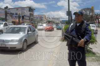 CHILPANNCINGO, GUERRERO 19JULIO2006.- Elementos de la policia preventiva municipal encabezados por el director de la corporacion Artemio Mejia Chavez, durante los operativos que realizan en distintos puntos de la ciudad de Chilpancingo, con el fin de detectar carros sospechosos, personas armadas y combatir a la delincuencia organizada. FOTO: Oscar Alvarado/CUARTOSCURO.COM