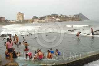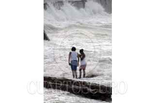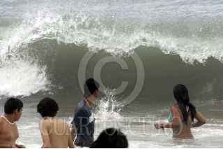 MAZATLAN, SINALOA 25JULIO2006.- Turistas disfrutan del cálido clima de las playas de la perla del Pacífico, a pesar de la alerta roja impuesta por las autoridades marítimas a causa de la cercanía de la tormenta tropical "Emily". FOTO: El Debate/CUARTOSCURO.COM