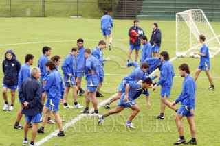 ZAPOPAN, JALISCO26JULIO2006. - El equipo Boca Juniors de Argentina entrenó bajo una perlinas lluvia en las instalaciones del Club Atlas Colomos previo al encuentro que sostendra contra los Zorros mañana en el estadio Jalisco. FOTO: José María Martínez/CUARTOSCURO.COM