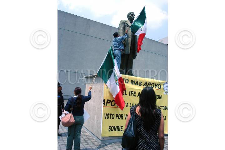 MÉXICO D.F. 27 JULIO 2006.- Decenas de simpatizantes del candidato presidencial del PRD se manifestaron en el patio central del IFE. Los manifestantes llevaron cientos de pollos como protesta ante el desempeño de la autoridad electoral. FOTO: Germán Romero/CUARTOSCURO.COM