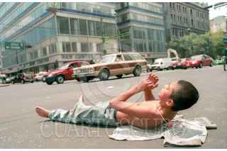 De lunes a domingo Memo se gana la vida en el cruce de Av. Juárez y Eje central, en el centro de la ciudad. FOTO: Oswaldo Ramírez/CUARTOSCURO.COM