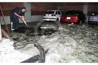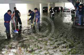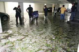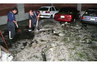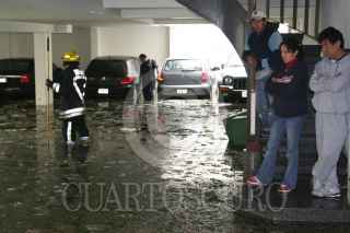 MÈXICO, D.F. 3AGOSTO2006.- La tromba que cayò en la ciudad afectò varios inmuebles, bomberos trabajan para sacar de un estacionamiento una gran cantidad de agua y granizo que cubrìa los coches. FOTO: Paola Hidalgo/CUARTOSCURO.COM