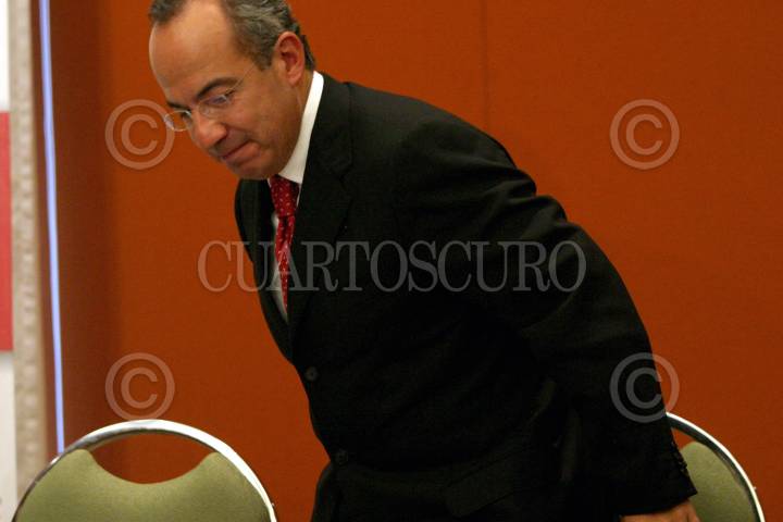 MEXICO, D.F., 03AGOSTO2006- Felipe Calderon, candidato a la presidencia de la República por el PAN, se reunió con expertos en seguridad en un hotel de la capital. FOTO: Moisés Pablo/CUARTOSCURO.COM
