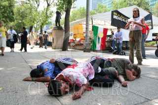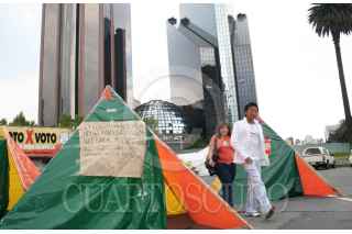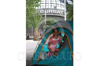 MÈXICO, D.F. 12AGOSTO2006.- Dentro de los campamentos ubicados en Paseo de la Reforma se han habilitado exposiciones y actividades culturales, donde los participan activamente. Una niña sale de su casa de campaña. FOTO: Paola Hidalgo/CUARTOSCURO.COM
