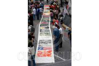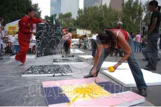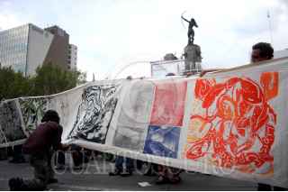MÉXICO D.F. 12AGOSTO2006.- Diversoso artistas plasticos, realizaron un gravado de 60 mentros, en la avenida paseo de la Reforma a la altura de la Diana cazadora, como una forma de apoyo al conteo voto por voto. FOITO: Guillermo Perea/CUARTOCURO.COM