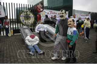 MÉXICO D.F. 14AGOSTO2006.- Simpatizantes de Andrés Manuel López Obrador, candidato presidencial de la coalición Por el Bien de Todos. bloquearon los accesos a las oficinas corporativas de Banamex ubicadas en Santa Fe. Los manifestantes exigían el recuento "Voto x Voto". FOTO: Fernando García/CUARTOSCURO.COM