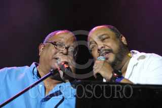 MONTERREY, NUEVO LEÓN 15 AGOSTO 2006.- Los cantantes cubanos; Pablo Milanes y Francisco Cespedes, compartieron escenario anoche en las instalaciones de la Arena Monterrey, al dar el concierto de Voces Romanticas. FOTO: Pedro Kristian López/CUARTOSCURO.COM