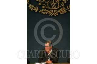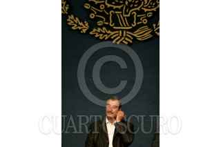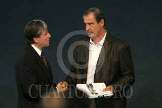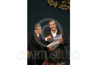 MEXICO, D.F., 23AGOSTO2006.- Julio Frenk Mora, Secretario de Salud, Vicente Fox Quesada, Presidente de la República y Eduardo Romero Ramos, Secretario de Función Pública, durante el Quinto Foro Ciudadano de la Salud, en la residencia oficial de los Pinos. FOTO: Moisés Pablo/CUARTOSCURO.COM