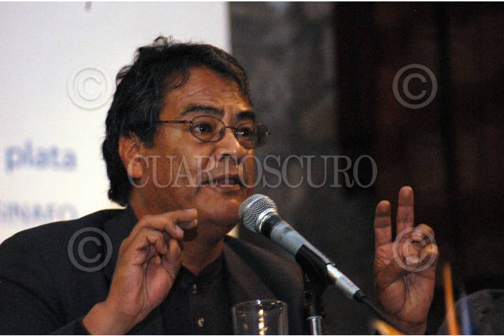 PACHUCA, HIDALGO 23AGOSTO2006.- El director de la agencia y revista Cuartoscuro, Pedro Valtierra, durante la conferencia en la Fototeca Nacional de Pachuca, a la cual fue invitado, dentro de las actividades del 30 aniversario de esta institución. FOTO: Guillermo Perea/CUARTOSCURO.COM