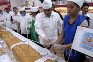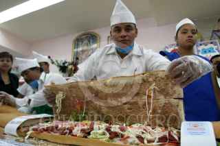 MEXICO, D.F., 23AGOSTO2006.- En la panificadora Virgen del Camino se realizó una torta de 5 metros encomo parte de la presentaciòn del proyecto de la preparación de mega torta de más de 38 metros durante la 3ra Feria de la Torta en la Delegación Venustiano Carranza impulsado por la Cámara Nacional de la Indusria de Restaurantes y Alimentos Condimentados. FOTO: Moisés Pablo/CUARTOSCURO.COM
