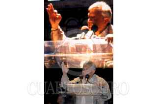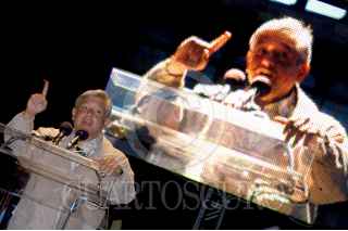 MÈXICO, D.F. 24AGOSTO2006.- Se llevò a cabo en el Zòcalo capitalino, la asamblea informatva en la que Andés Manuel López Obardor, candidato a la presidencia de la república de la coalición Por el Bien de Todos, menciono que hoy los ministros del Tribunal Electoral del Poder Judicial de la Federación tienen dos caminos: actuar con decoro, rectitud y patriotismo o el de la traición e irse al basurero de la historia FOTO: Guillermo Perea/CUARTSCURO.COM