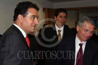 MÉXICO, D.F. 24AGOSTO2006.- El procurador general de la República, Daniel Cabeza de Vaca, presentó el libro "Ser penalista", el cual coordino. Durante la presentación, el abogado del ex presidente Luis Echeverría, Juan Velázquez, saludó al funcionario. FOTO: Isaac Esquivel/CUARTOSCURO.COM