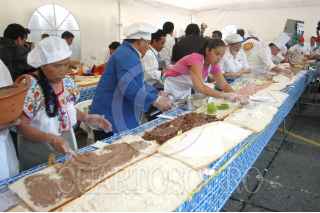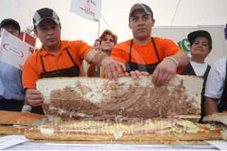 MÉXICO, D.F. 25AGOSTO2006.- Alrededor de 100 cocineros mexicanos rompieron el récord Guiness al elaborar una mega torta de aproximadamente 42 metros de largo durante el Tercer Festival de la Torta en la explanada de la delegación Venustiano Carranza. FOTO: Ivàn Stephens/CUARTOSCURO.COM