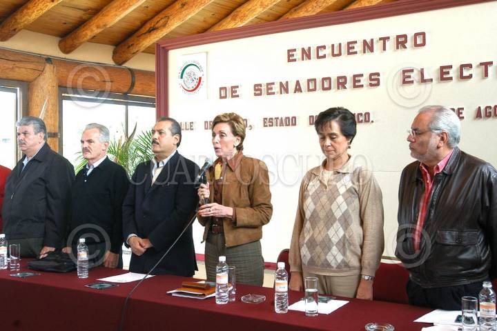 MÉXICO D.F. 25AGOSTO2006.- Francisco Labastida, Manlio Fabio Beltrones, Dra. Rosario Green Macias, María de los Ángeles Moreno, durante el encuentro de senadores electos del PRI realizado en Valle de Bravo, Estado de México. FOTO: Francisco Martínez/CUARTOSCURO.COM