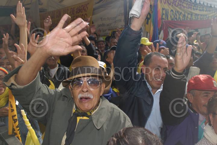 MÉXICO, D.F. 01SEPTIEMBRE2006.- Simpatizantes al candidato de la coalición Por el Bien de Todos durante el mensaje que leyo López Obrador, en el plantón que mantienen en el Zócalo de la ciudad de México. FOTO: Nelly Salas/CUARTOSCURO.COM