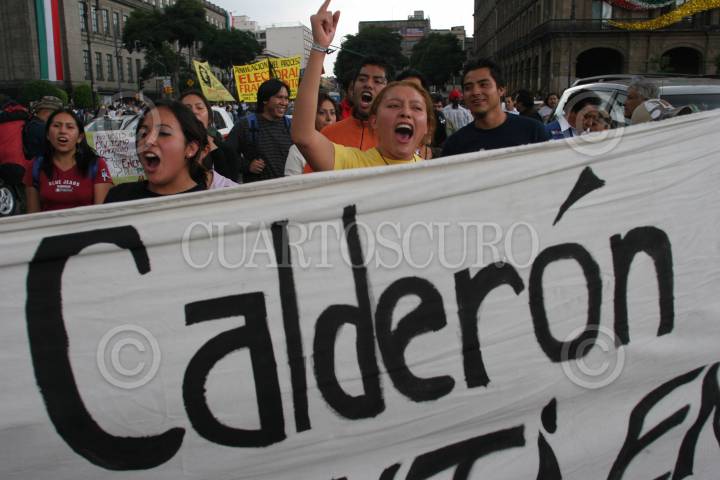 MÉXICO D.F. 01SEPTIEMBRE 2006.- Jóvenes simpatizantes del Voto por voto marchan en el centro de la ciudad para concentrarse en la plancha del Zócalo de esta ciudad. FOTO: MOISES ZUÑIGA/CUARTOSCURO.COM