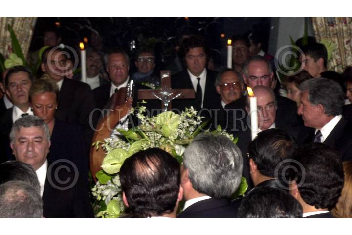 El ex presidente de México Miguel de la Madrid Huartado a su llegada al velorio de Carlos Hank González en su Rancho de Toluca. FOTO: David Bolaños/CUARTOSCURO.COM