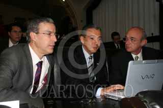 MÉXICO, D.F. 5SEPTIEMBRE2006.- José González Morfin, Jesús Heriberto Félix Guerra Y Fernando Elizondo Barragán, legisladores panistas observan una animación minutos antes del inicio de la sesión en la cámara de senadores. FOTO: PAOLA HIDALGO/CUARTOSCURO.COM