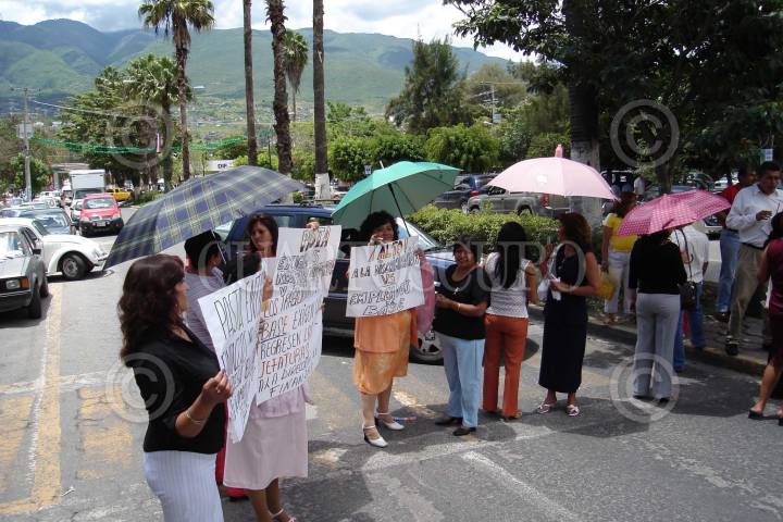 CHILPANCINGO, GUERRERO, 05SEPTIEMBRE2006.- Trabajadores de las oficinas centrales de la Secretaria de Educacion en Guerrero (SEG), bloquearon la avenida Ruffo Figueroa, para exigir les sean entregadas sus plazas, las cuales les fueron "congeladas" de manera arbitraria por el secretario de educacion Jose Luis Gonzalez de la Vega Otero. FOTO: Oscar Alvarado/CUARTOSCURO.COM