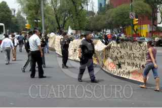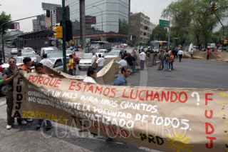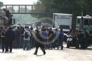 MÉXICO, D.F. 11SEPTIEMBRE2006. Trabajadores de limpia del GDF en la delegación Venustiano Carranza bloquearon la circulación del Eje 3 Sur y la Calle de Agustín Lara en la colonia Magdalena Mixouca en protesta por la falta de compradores que adquieran sus refacciones. FOTO: PEDRO MARRUFO/CUARTOSCURO.COM