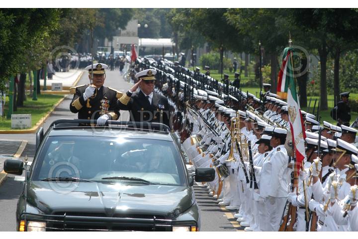 MÉXICO D.F. 12SEPTIEMBRE2006.- Marco Antonio Peyrot González, Secretario de Marina encabezo la ceremonia de revista al contigente naval que participara en el desfile militar que conmemora el inicio de la lucha de independencia. Familiares de los marinos asistieron a las instalaciones de la Secretaria de Marina a observar la parada militar. FOTO: GERMÁN ROMERO/CUARTOSCURO.COM