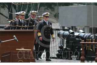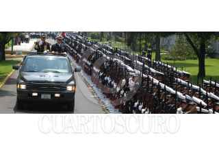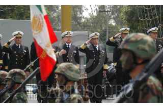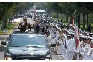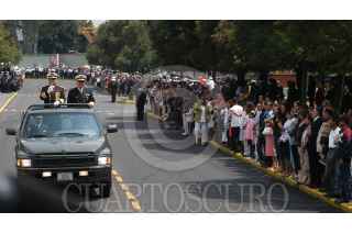 MÉXICO D.F. 12SEPTIEMBRE2006.- Marco Antonio Peyrot González, Secretario de Marina encabezo la ceremonia de revista al contigente naval que participara en el desfile militar que conmemora el inicio de la lucha de independencia. Familiares de los marinos asistieron a las instalaciones de la Secretaria de Marina a observar la parada militar. FOTO: GERMÁN ROMERO/CUARTOSCURO.COM