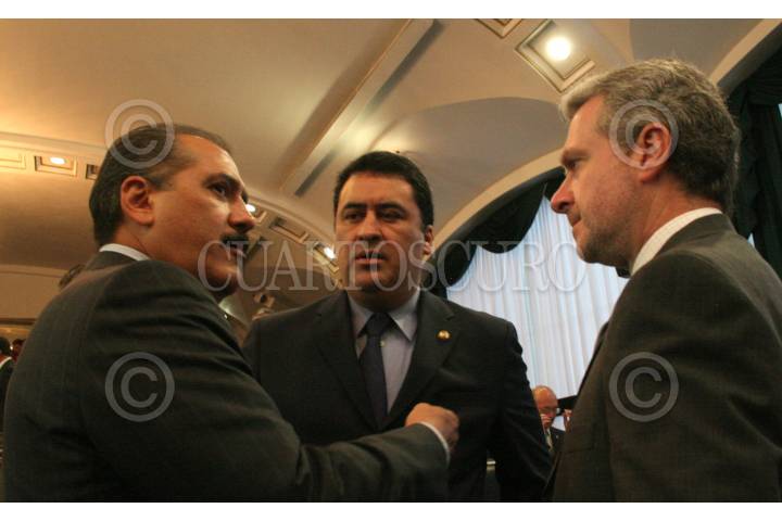 MÉXICO, D.F. 12SEPTIEMBRE2006.- Ante la mesa directiva, Manlio Fabio Beltrones y Carlos Navarrete Ruiz, comentan la sesión que transcurría en la cámara de senadores. FOTO: PAOLA HIADLGO/CUATOSCURO.COM