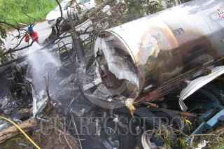 VILLAHERMOSA, TABASCO 12 SEPTIEMBRE 2006.- Un grupo de bomberos sofocan el incendio de un trailer que transportaba azufre, el cual volcó sobre la carretera federal Villahermosa-Cárdenas. FOTO:MARCO POLO GUZMÁN/CUARTOSCURO.COM