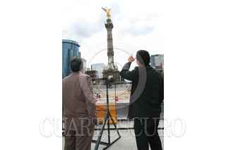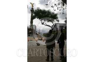 MÈXICO, D.F. 13SEPTIEMBRE2006.- Transeuntes observan los resultados de las reparaciones realizadas a la estatua del Àngel de la Independencia, despuès de un largo periodo de permanecer oculto. FOTO: PAOLA HIDALGO/CUARTOSCURO.COM